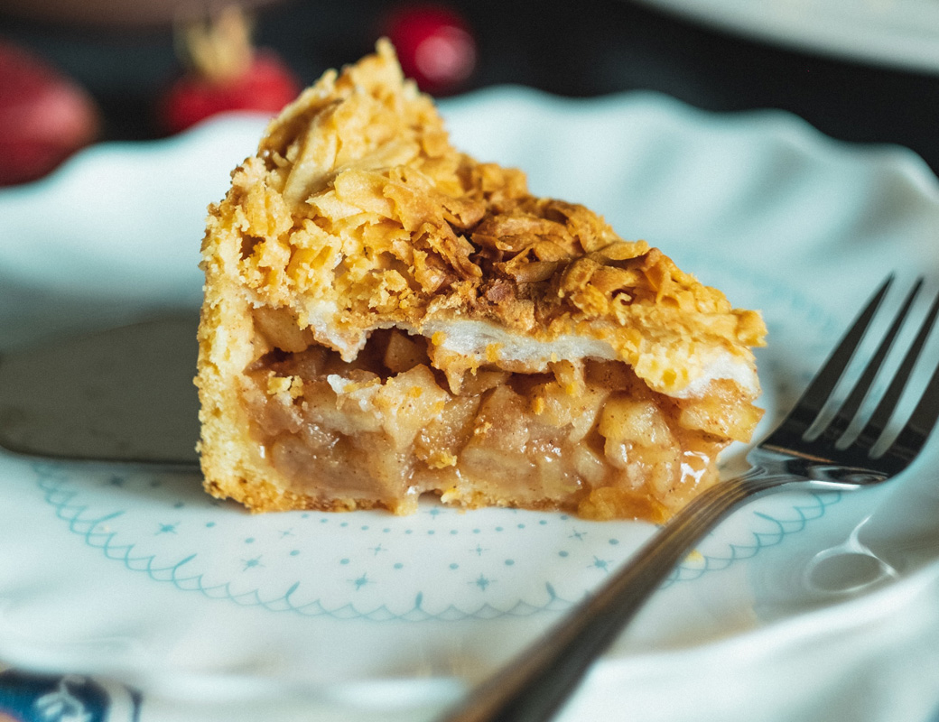 Интересный и очень вкусный пирог родом из Англии. Особенно можно отметить интересную вариацию – добавлены не только крошка из теста и фрукты, в данном случае яблоки, но немного творожного нежного сыра. Такой выпечкой можно побаловать себя и в будни, и в праздники. Отлично сочетается на завтрак с кофе!