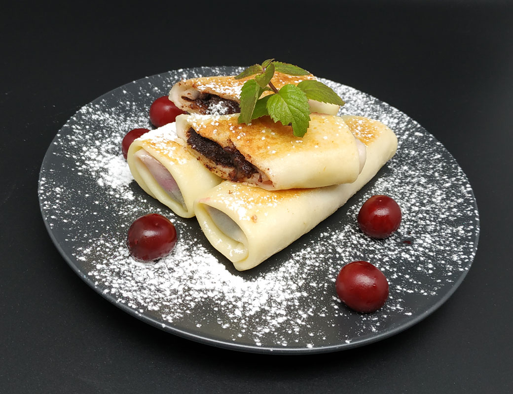 - Налисники з шоколадним тістом та сиром або вишнею.