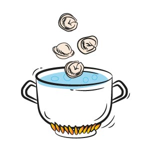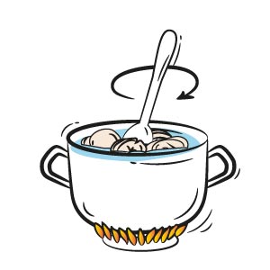 4. Після того, як пельмені вспливуть, зменшити вогонь і знову помішати. |