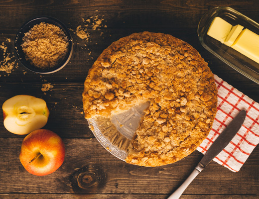 Цікавий та дуже смачний пиріг родом з Англії. Особливо можна відзначити цікаву варіацію – додані не лише крихта з тіста та фрукти, в даному випадку яблука, але трохи ніжного сиру.