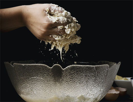 Багатошаровий товстий коржик з начинкою з м'яса, кількох сортів домашнього сиру, часнику та зелені – часте частування не лише у свята, а й у будні.
