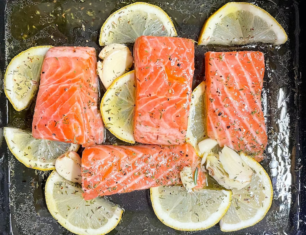 Червона риба запечена в духовці з ароматними травами, часником і лимоном - це просте та смачне блюдо, яке неймовірно легко приготувати. Риба запікається в духовці разом із лимонними скибочками, які надають страві особливого аромату та смаку. А розмарин та часник додають пікантності та глибини смаку. Цей рецепт є чудовим вибором для тих, хто стежить за своїм здоров'ям, оскільки червона риба містить багато корисних вітамінів та мінералів.